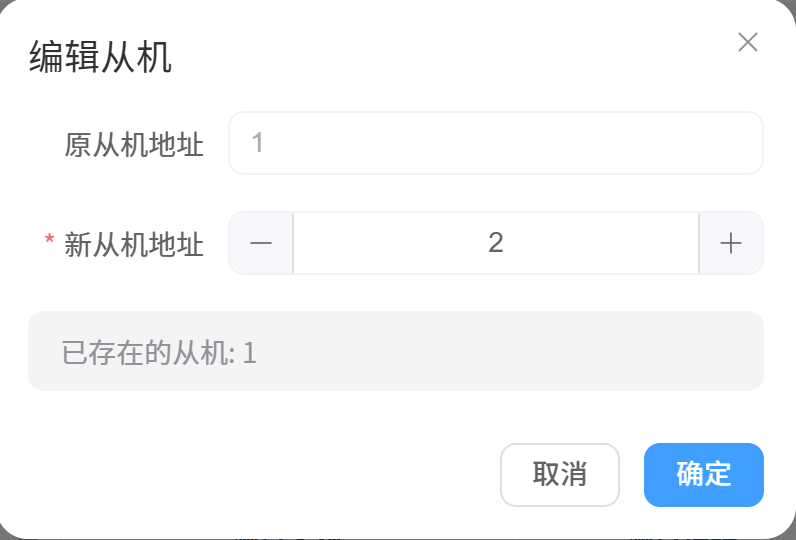 点击界面中的添加从机按钮,在弹出的表单中填写从机地址。填写完毕后点击“确定”即可完成从机的添加。