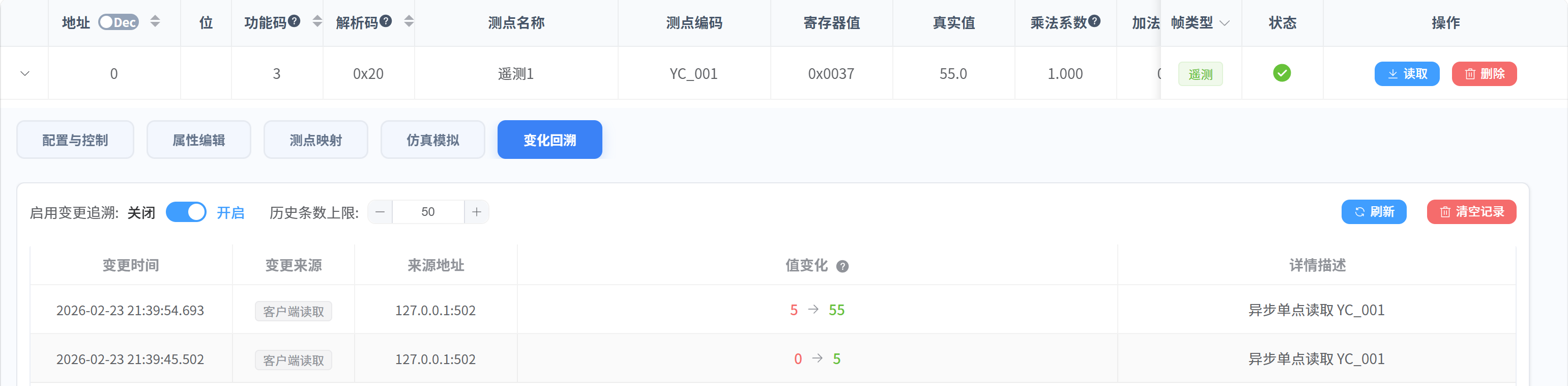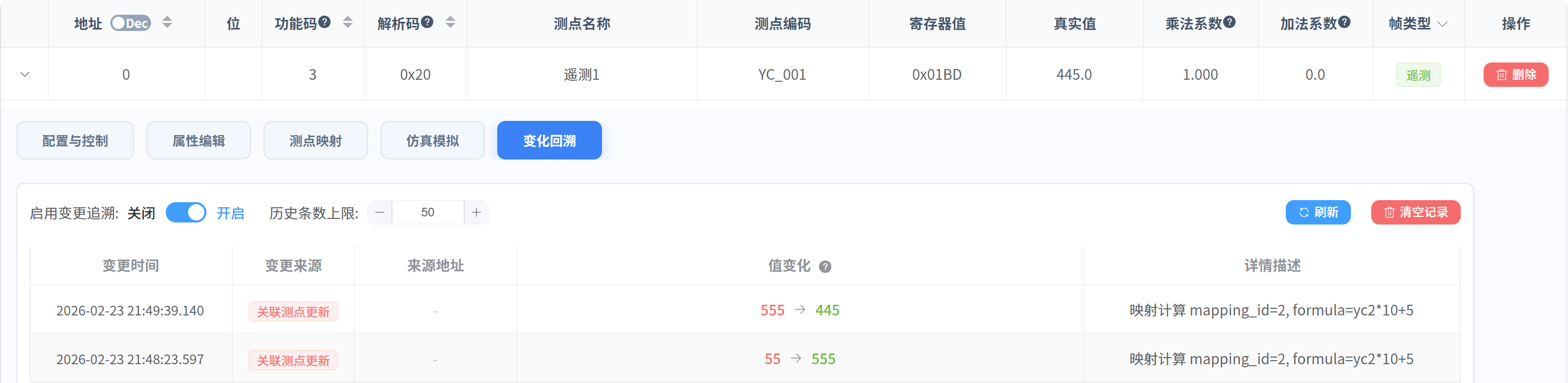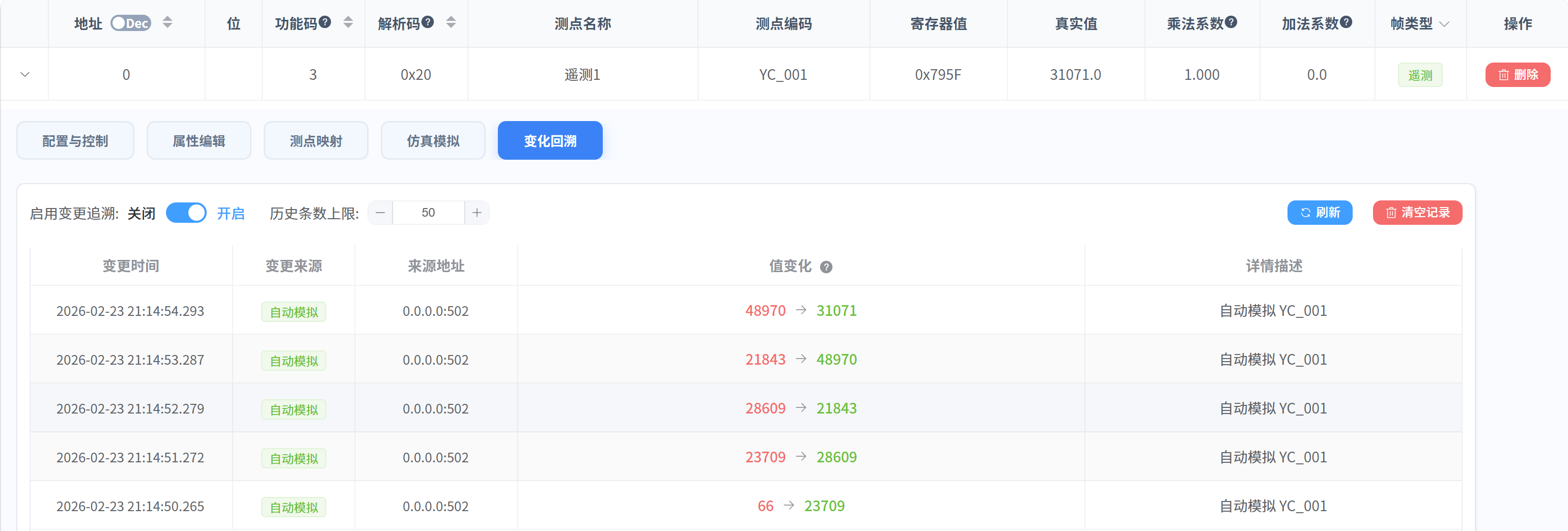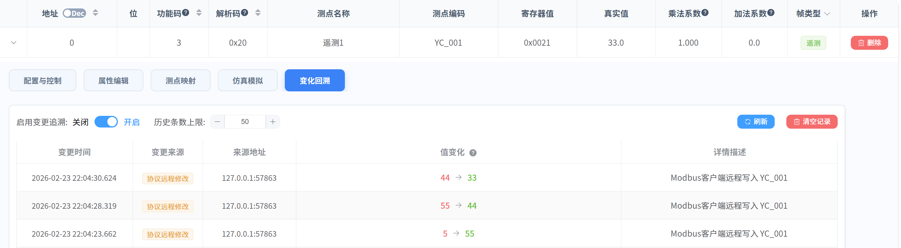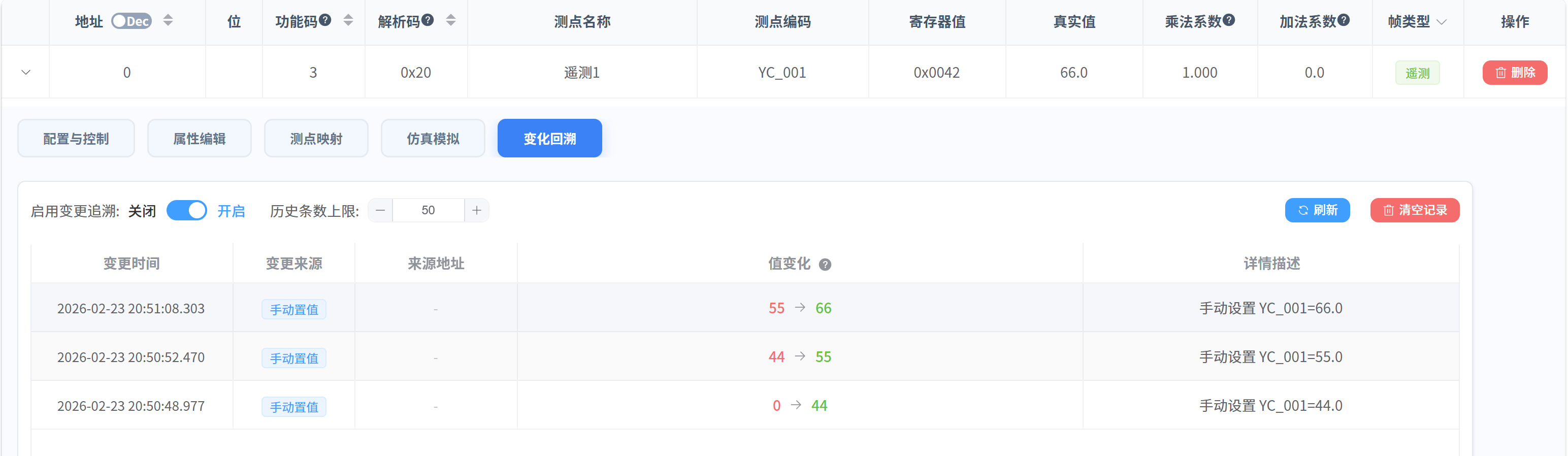 本章节介绍测点值的变化回溯功能。系统会记录测点值发生变化的原因和详细信息,以便于随时排查问题和追踪数据来源。