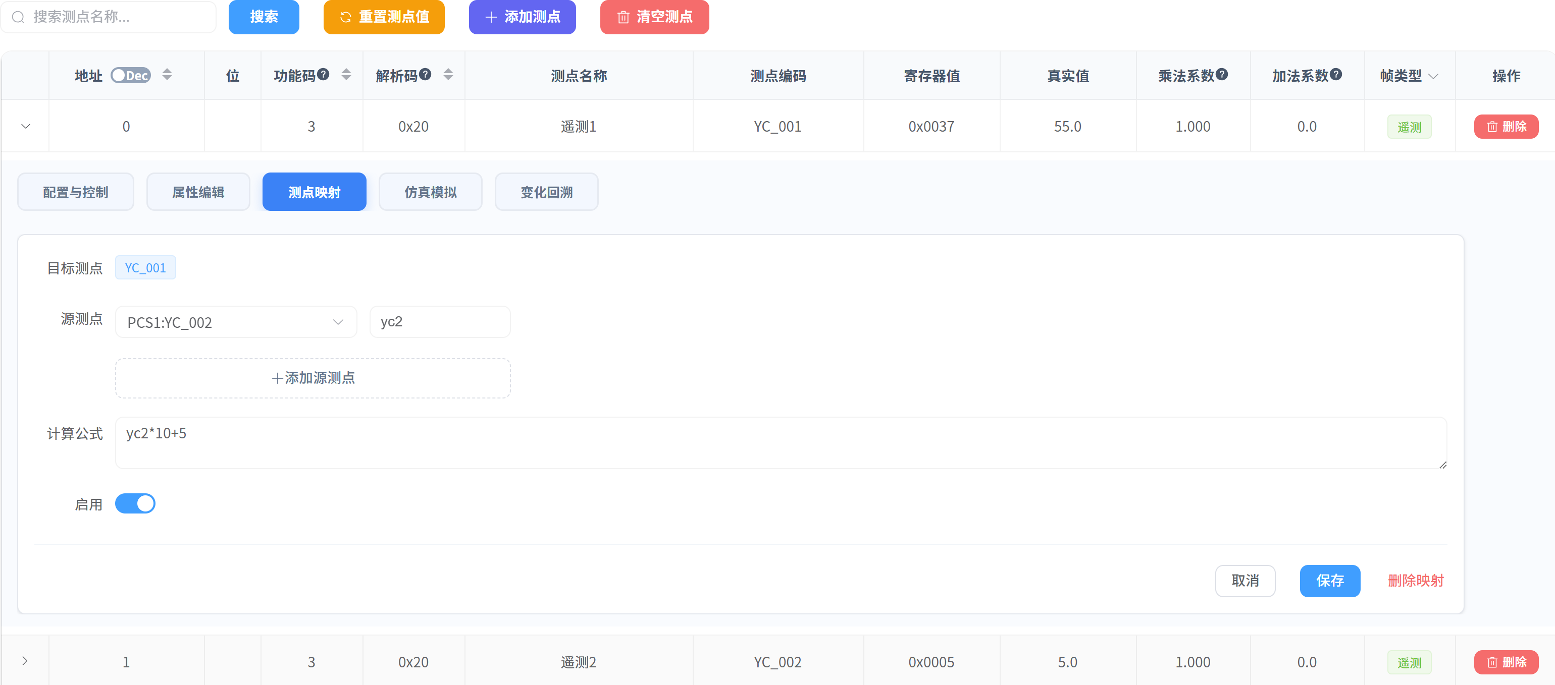 mapping: 关联测点更新